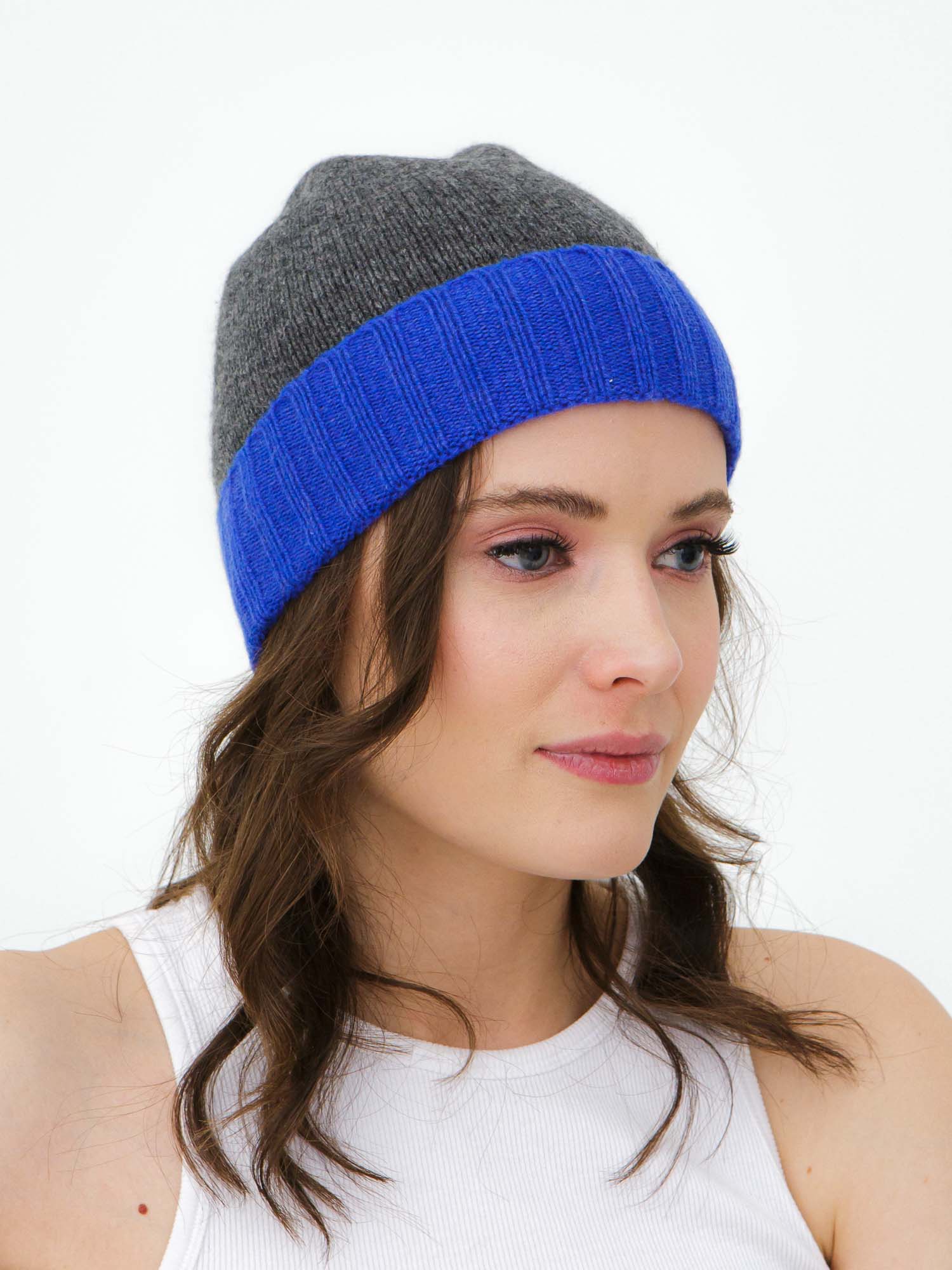 Шапка кашемировая 19309 графит/синий