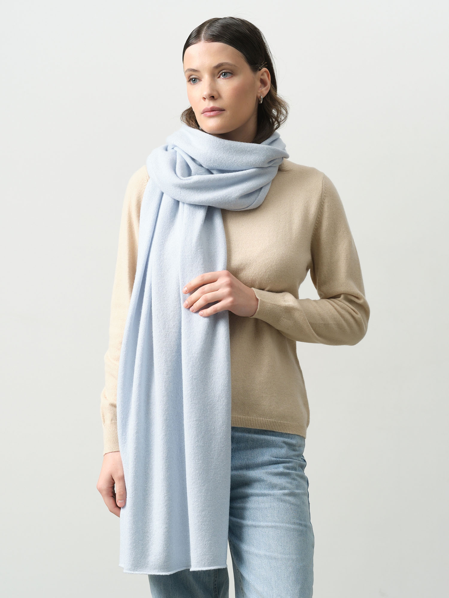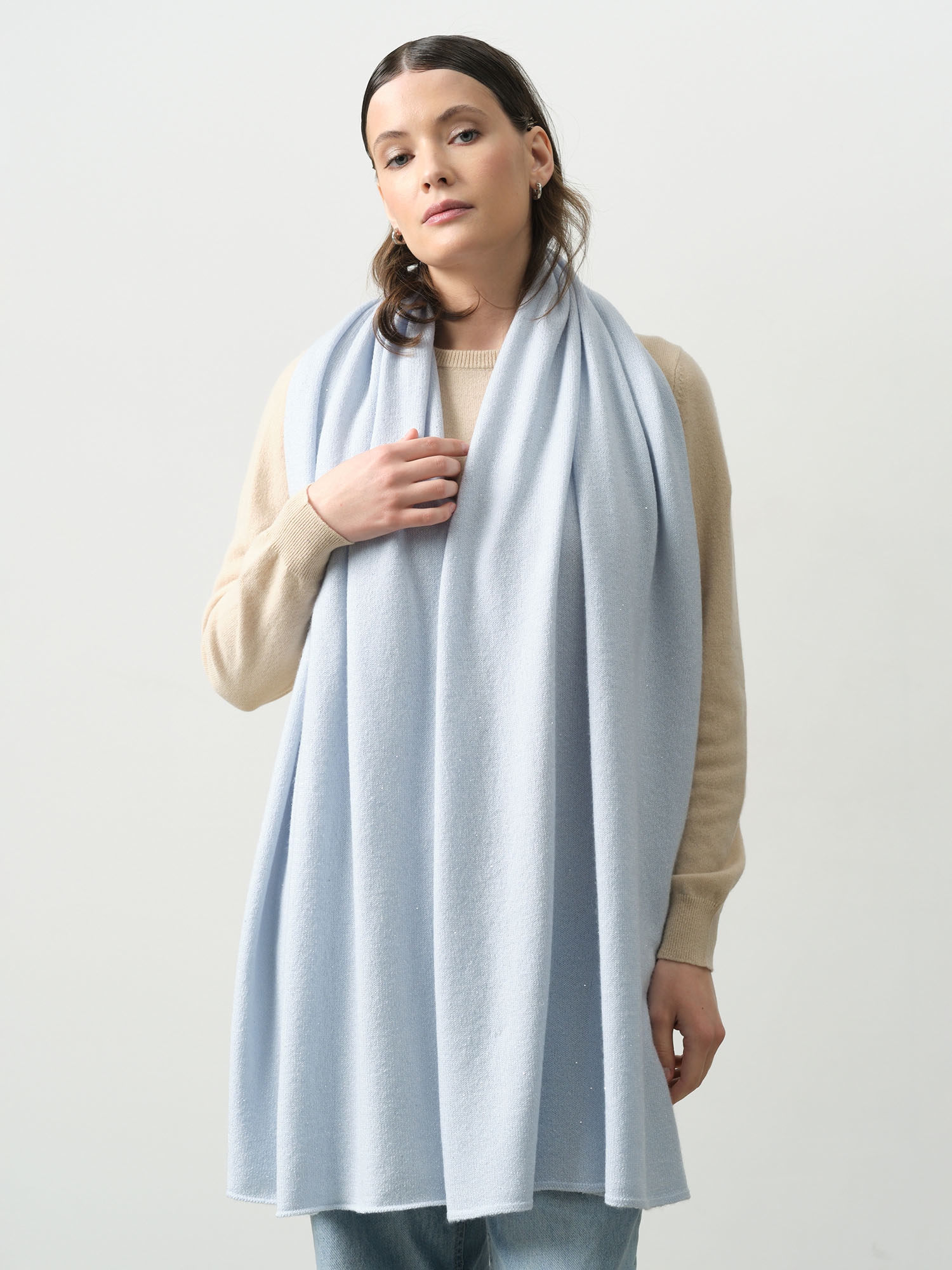 Палантин из кашемира в оттенке аквамарин – элегантный и нежный аксессуар. Натуральный материал обеспечивает мягкость и тепло. Универсальный размер позволяет носить его разными способами. Идеально дополняет осенне-зимний гардероб.