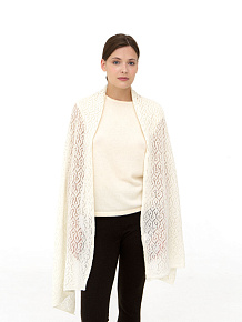 Модель выполнена в свободной форме с выразительной фактурной вязкой, создающей объёмную текстуру. Пластичная структура материала позволяет палантину красиво струиться и формировать мягкие складки.