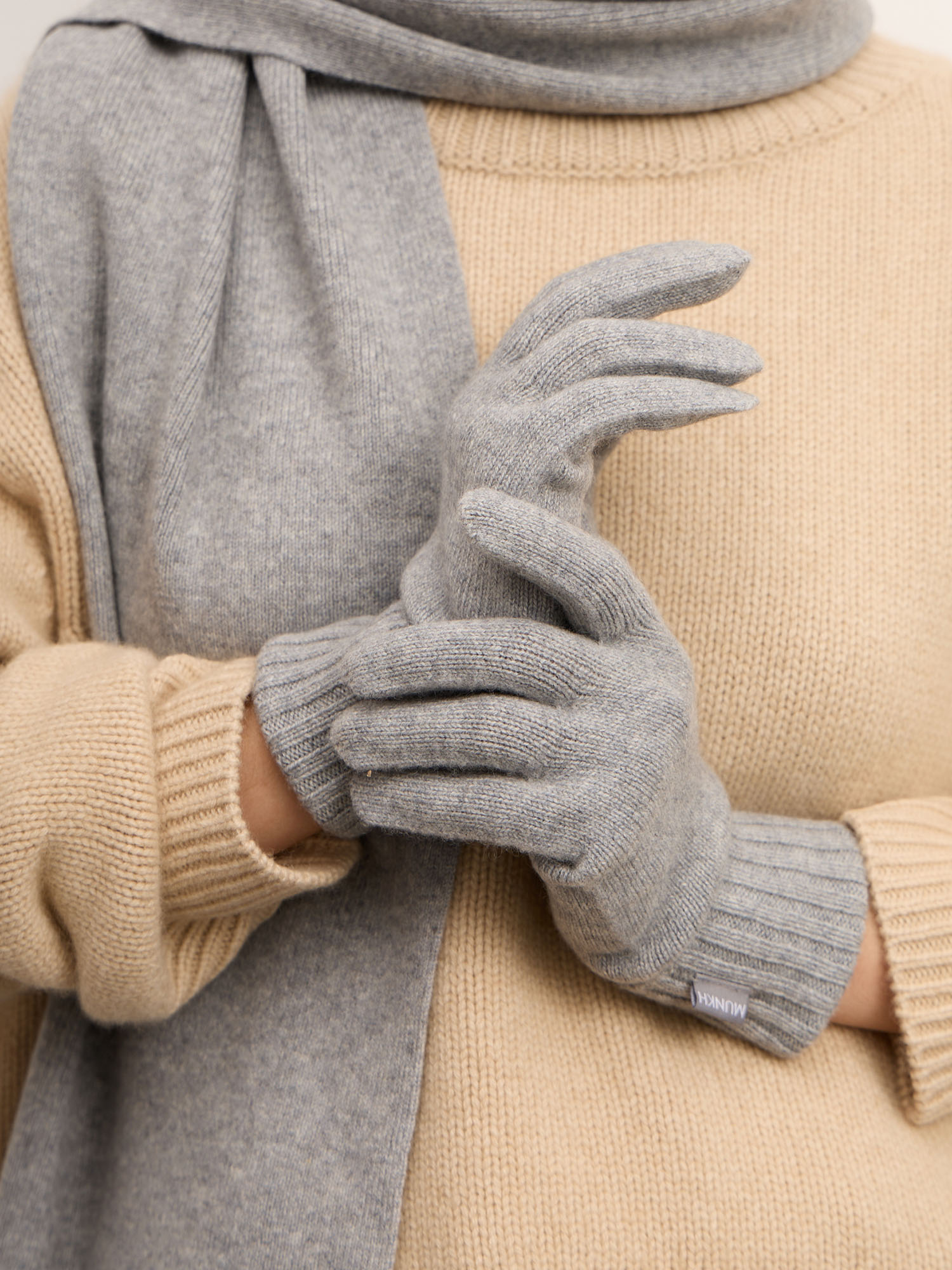 Перчатки выполнены из натурального кашемира — одного из самых ценных и редких материалов в мире. Волокно отличается исключительной тонкостью и мягкостью, обеспечивает тепло без утяжеления и позволяет коже «дышать». Кашемир гипоаллергенен и обладает природной терморегуляцией, что делает изделие особенно комфортным для ежедневного использования