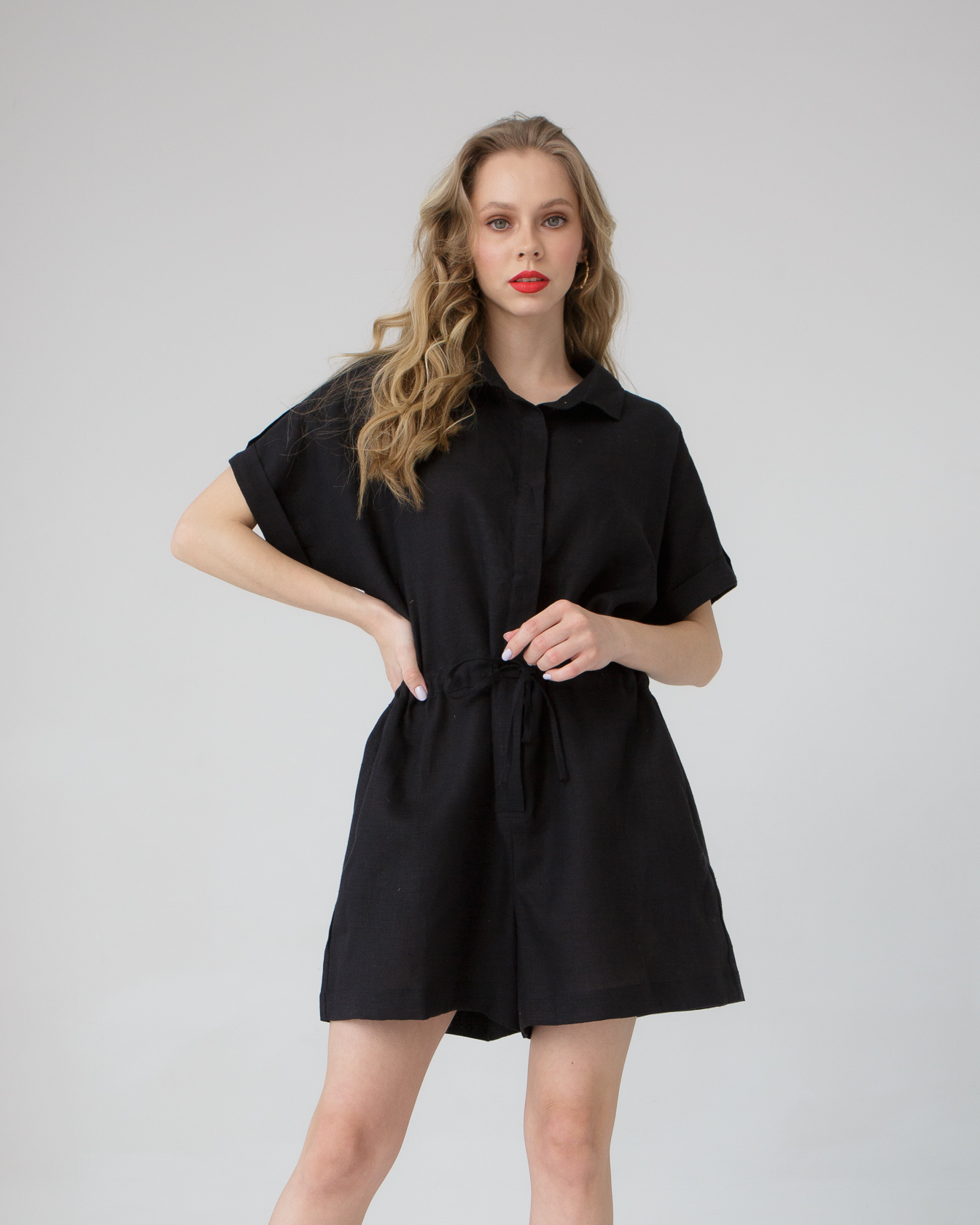 Комбинезон льняной черный 26001