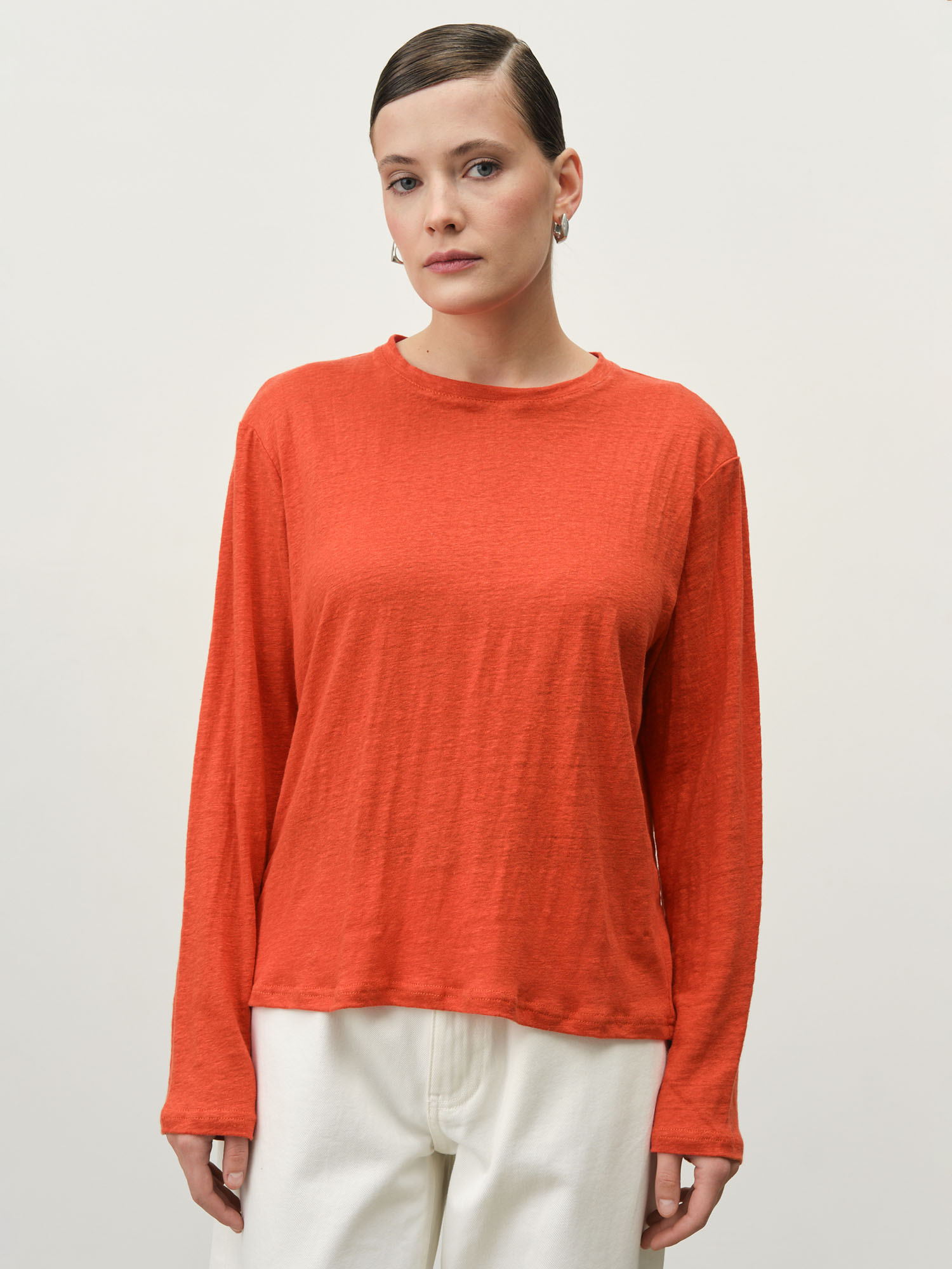 Лонгслив из льна 2902 коралловый