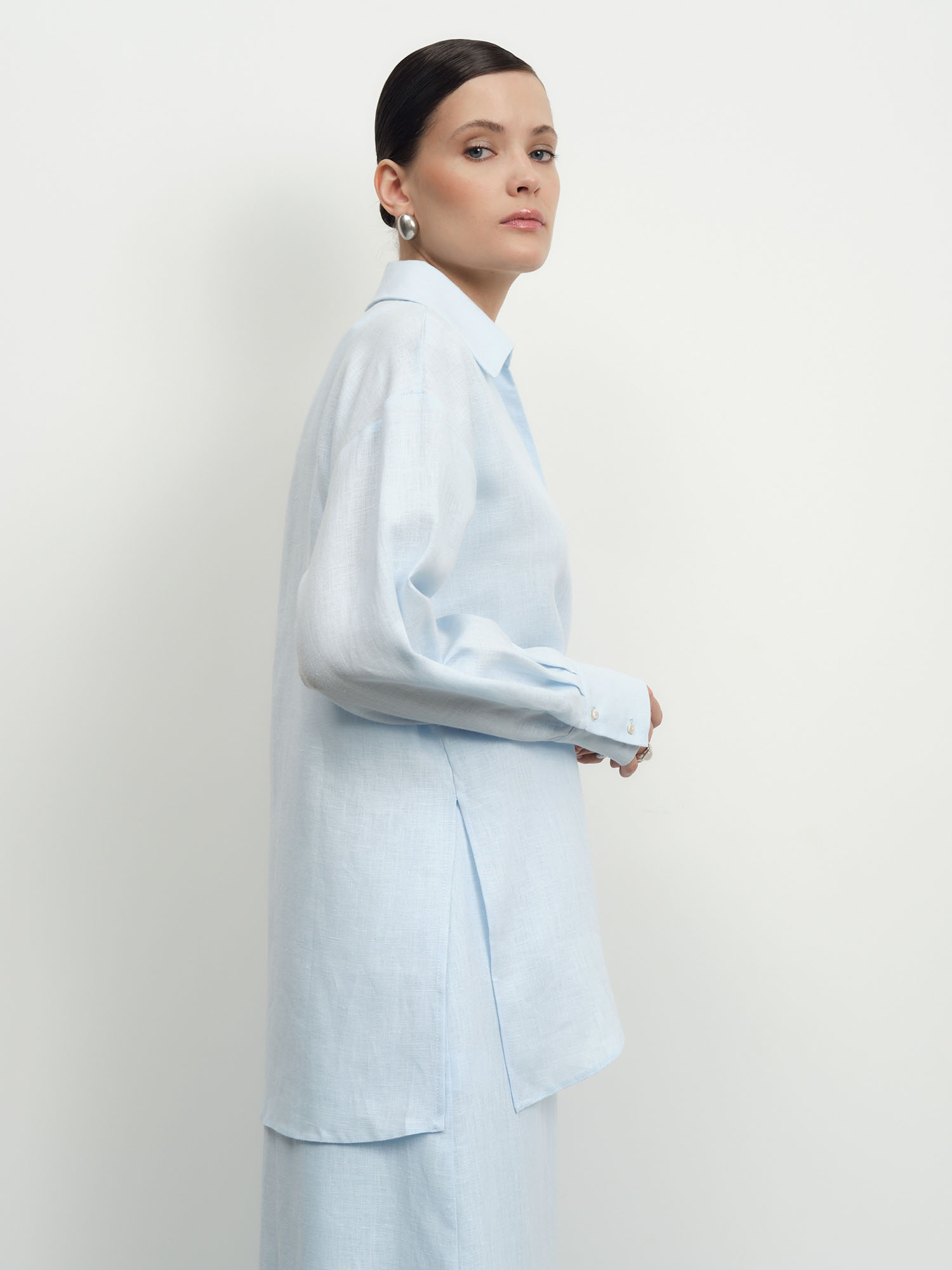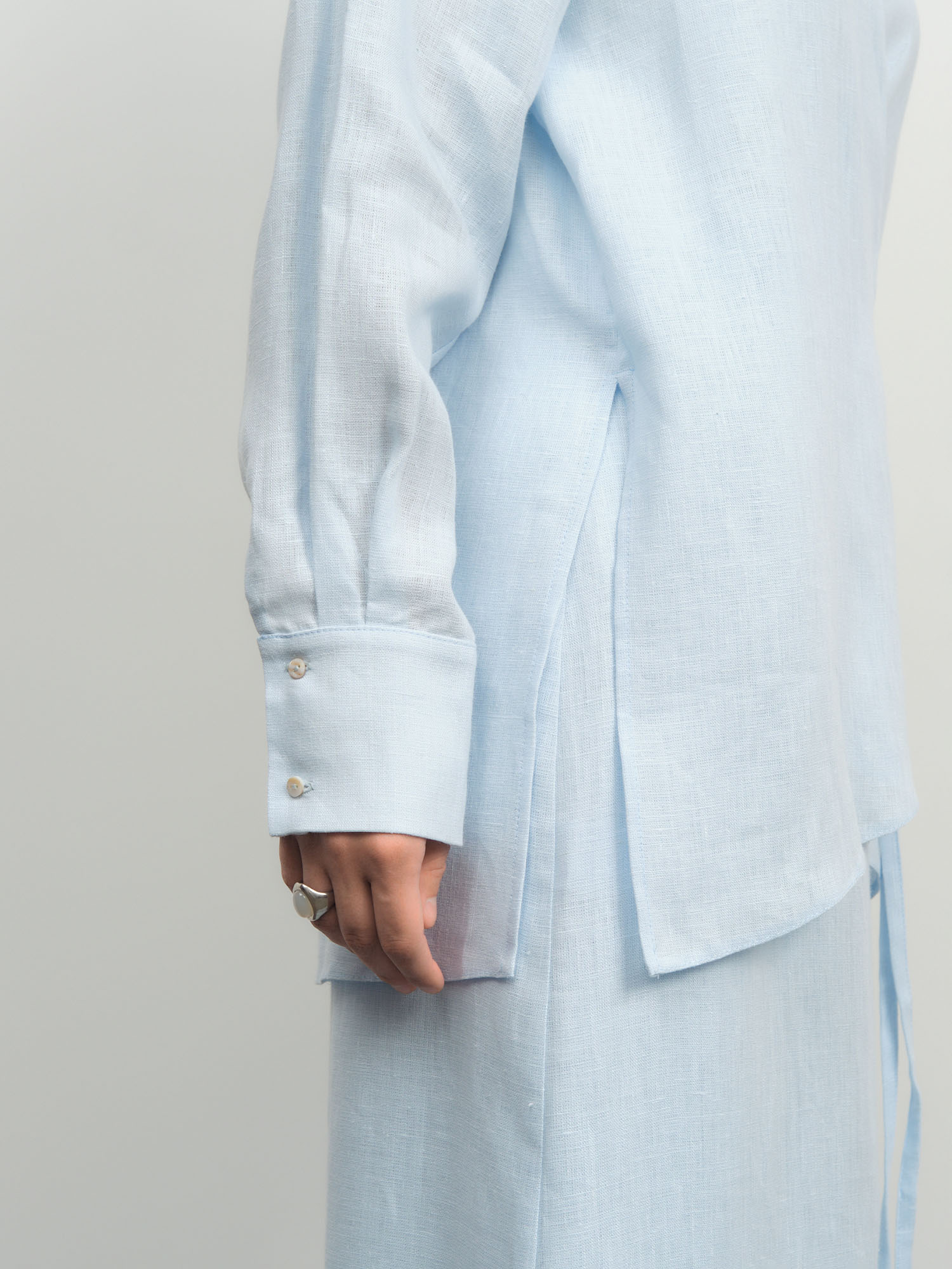 Рубашка льняная 80990 голубая