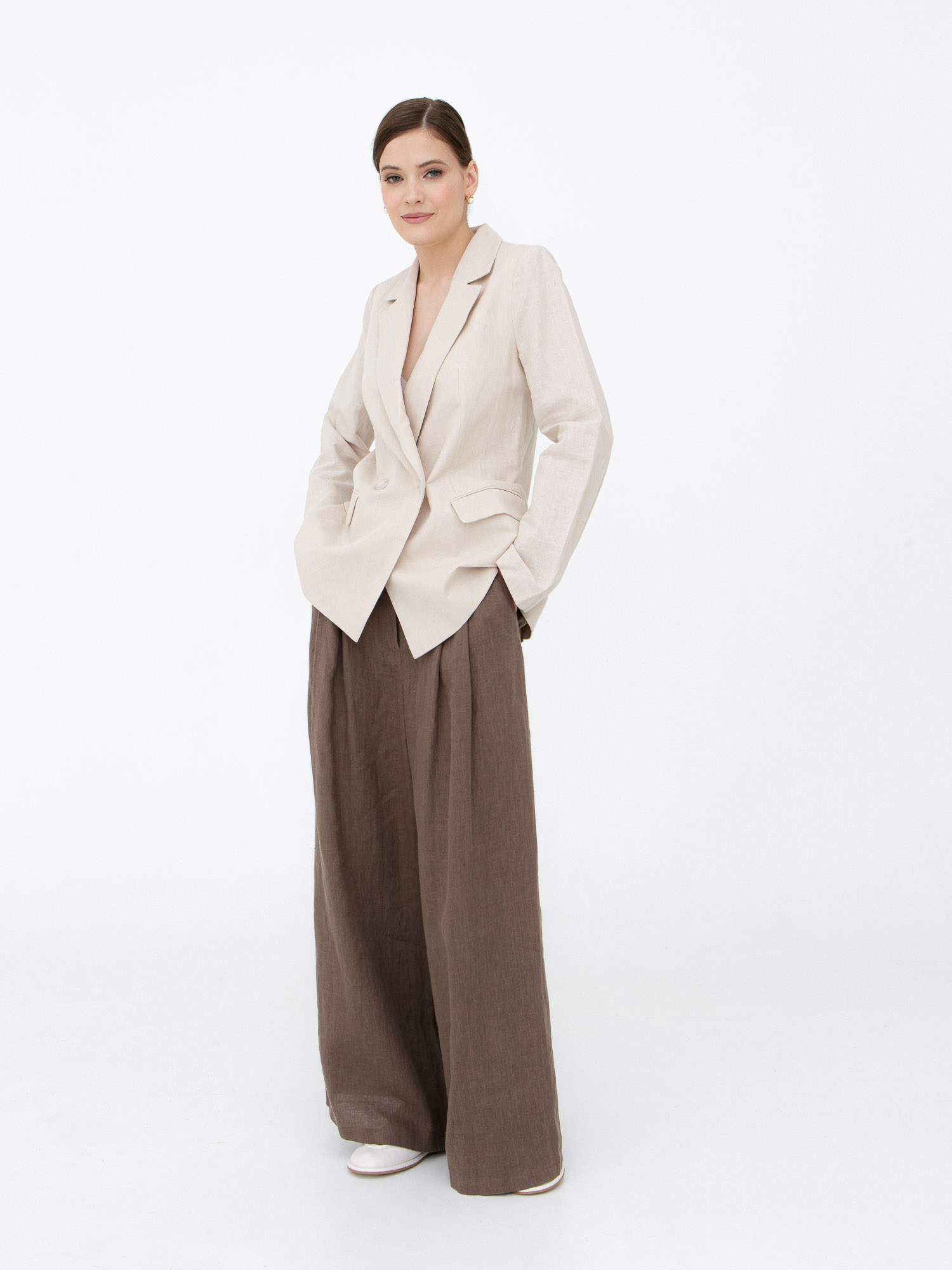 Жакет из льна и хлопка КЛ-7718-ИЛ23 бежевый
