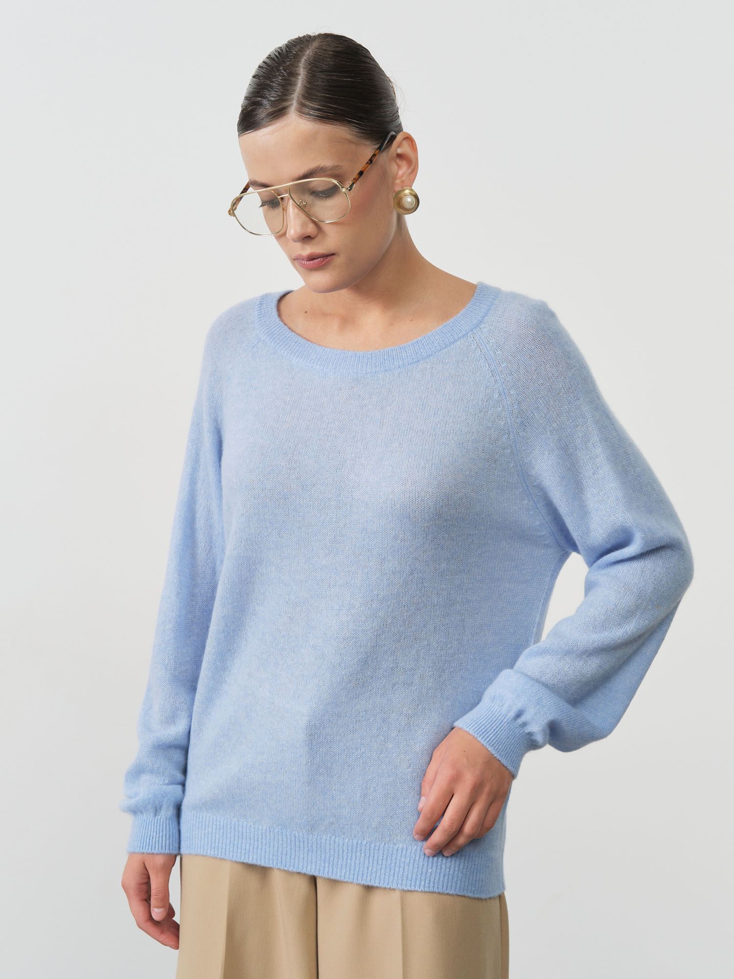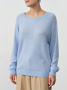 Джемпер очень тонкий и лёгкий, цвет очень приятный - нежно голубой, но модель сильно большемерит.