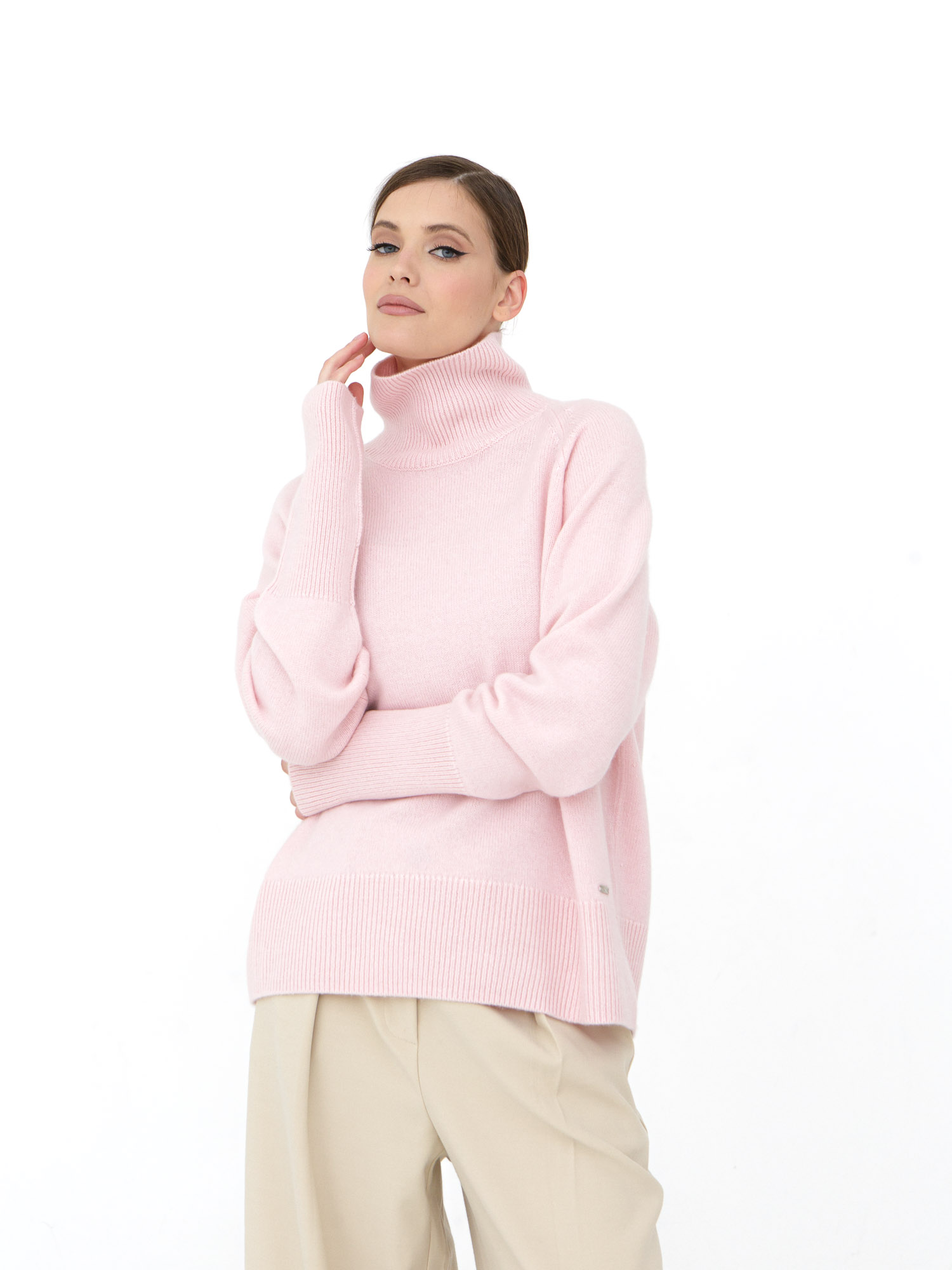 Кашемировый женский джемпер свободного кроя в нежном розовом цвете — это идеальный выбор для тех, кто ценит стиль и комфорт. Изготовлен из 100% кашемира, который отличается исключительной мягкостью и теплотой, обеспечивая максимальный комфорт в прохладные дни. Джемпер имеет свободный силуэт и высокий воротник, который добавляет нотку элегантности и защищает от ветра. Нежный розовый оттенок подчеркнет вашу женственность и создаст гармоничный образ, подходящий как для повседневного использования, так и для особых случаев.